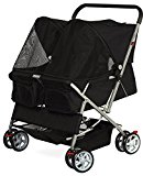 This stroller is lightweight and heavy-duty and comes with mesh screen windows that provide excellent ventilation while keeping bugs away from your pet.